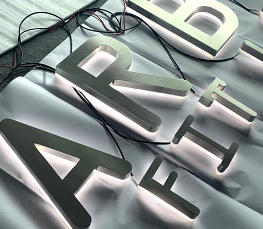 An LED sign which is backlit (the front face and sides are opaque and do not glow)
