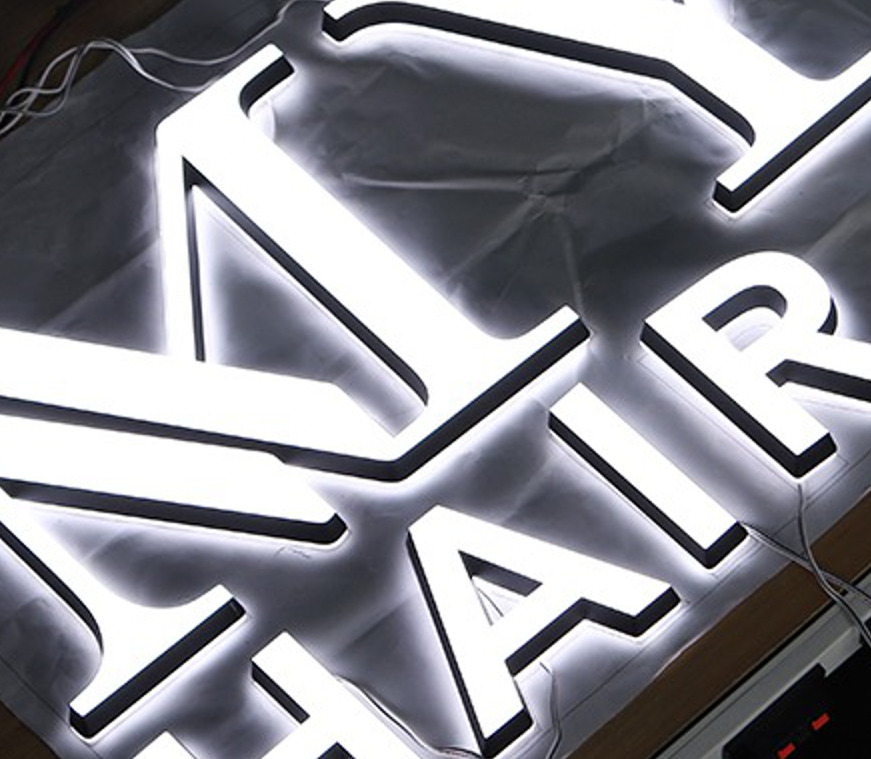 A sign which has an acrylic front and is backlit (sides and front do NOT light up)