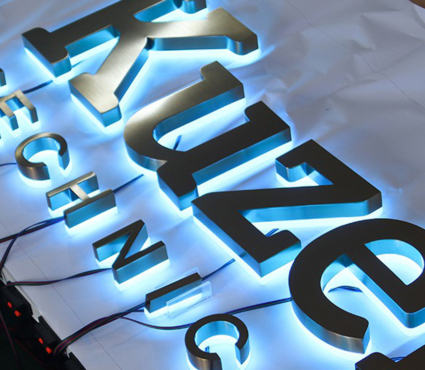 An LED sign which is backlit (the front face and sides are opaque and do not glow).